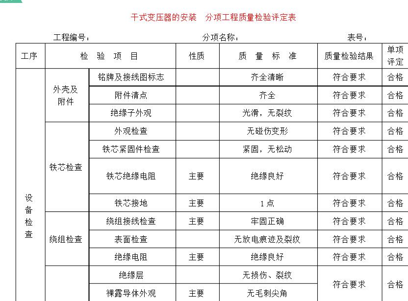 干式變壓器是一種無油工作的變壓器。普通干式變壓器的安裝更為重要。干式變壓器的安裝問題需要引起更多關注。一般來說,應該正確注意。干式變壓器安裝方法不斷提高安裝水平和容量,使干式變壓器更安全,更高效。對于干式變壓器安裝后還要進行評估,普通公司如何評估安裝后?以下是常見的表格供您參考:
