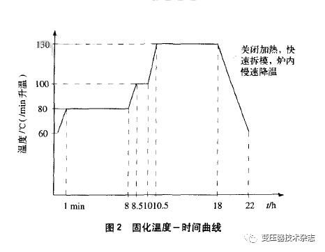 澆注好的模具必需在固化爐內(nèi)依照固化溫度一時(shí)候曲線(xiàn)停止加熱固化。進(jìn)程中,需包管固化爐內(nèi)溫度平均。固化溫度~時(shí)候曲線(xiàn)如圖2所示。